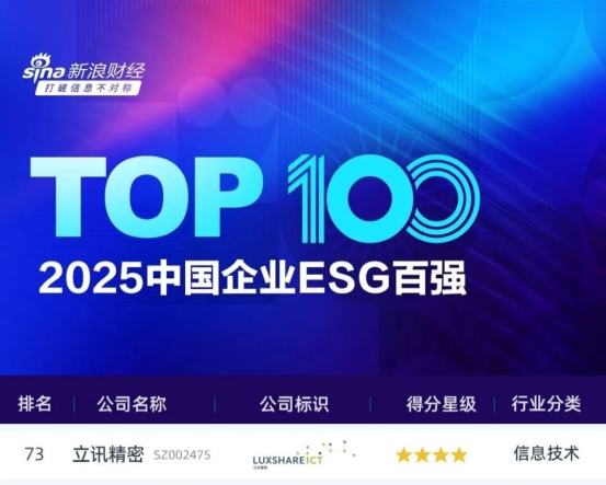 - ESG赋能长期发展,立讯精密跻身新浪财经“2025中国企业ESG百强”
