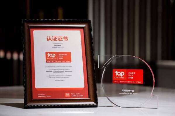 2026 年 1 月 15 日,全球权威杰出雇主调研机构( Top Employers Institute )正式揭晓"中国 2026 年度杰出雇主"榜单。凭借在塑造面向未来的组织、持续完善人才发展战略,以及打造开放、透明、包容的企业文化等方面的卓越表现,阿斯利康连续第十六年荣登该榜单,并再度稳居第四名。