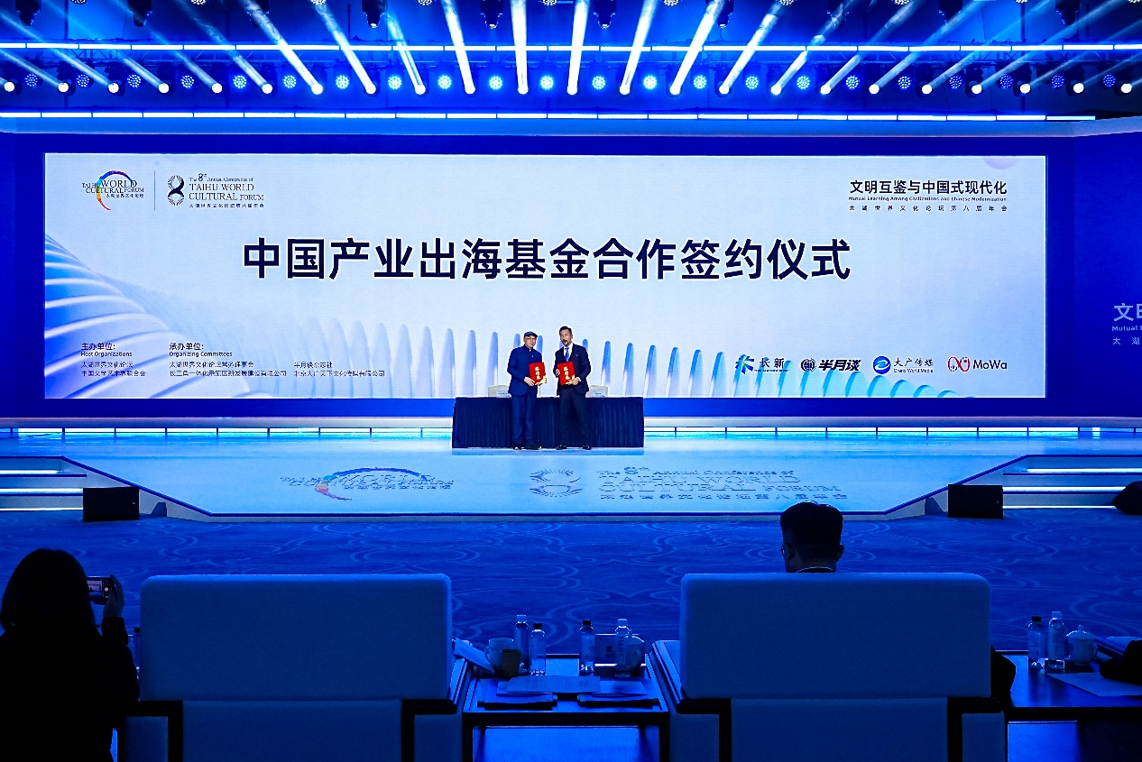 在本届年会上,太湖世界文化论坛与上海胡润百富投资管理咨询有限公司进行合作签约,双方将设立中国产业出海基金,通过产业合作助力中国企业出海。
