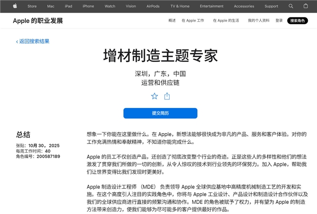 近日,苹果公司正在招聘增材制造(3D打印)领域专家,此前同一职位曾于年初2月5日开放过。该岗位主要负责开发与优化金属增材制造工艺,利用3D打印系统及粉末冶金等技术,支持合金开发与产品设计,并推动从概念到量产的转化。